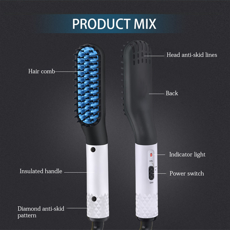 Functions as a beard straightener, hair styling comb, and volumizer. Suitable for curly, thick, wavy, long, or short hair.